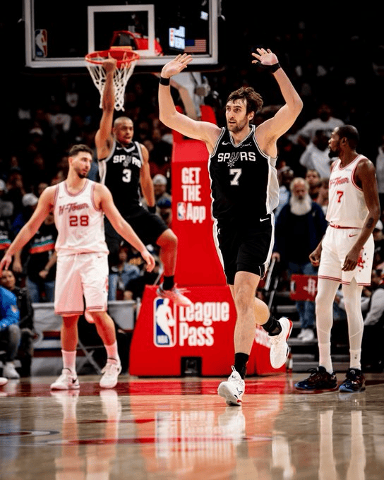 马刺官方赛后晒出赛场照,并附文:“晚安,休斯顿!”